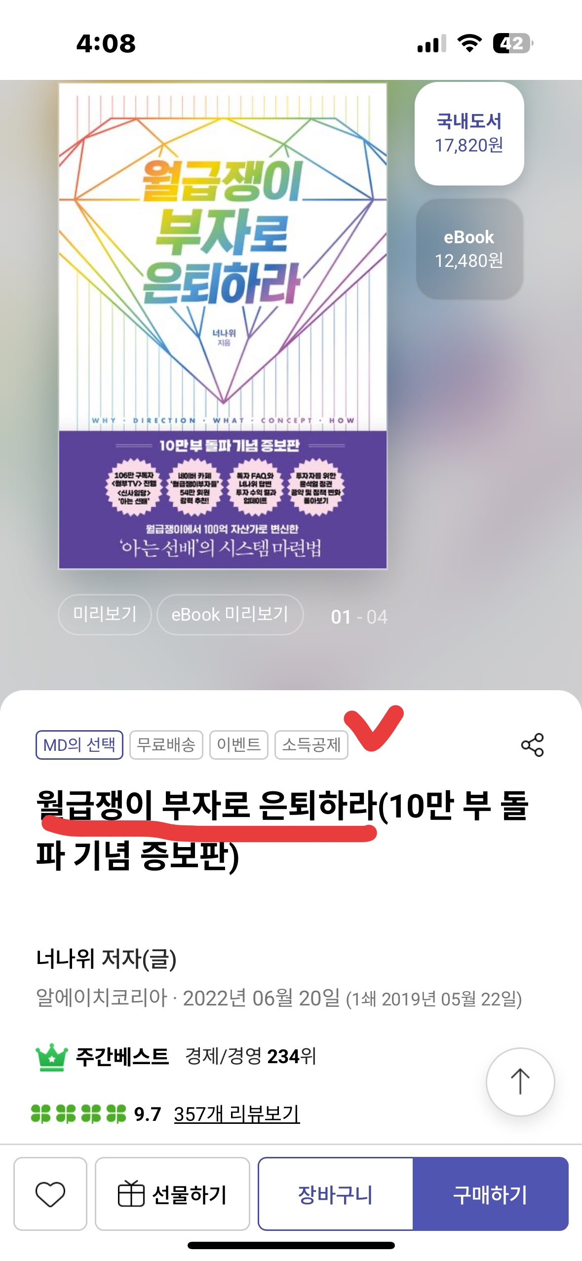 가계부 지출 내역 중 '자기계발/도서' 항목에서 가장 빛나는 아이템은 단연 월급쟁이 부자로 은퇴하라(10만 부 돌파 기념 증보판)입니다. 수많은 경제 경영 서적을 읽어왔지만, 이 책은 단순한 정보 전달을 넘어 직장인 투자자의 마인드셋을 송두리째 바꿔놓은 계기가 되었습니다.
